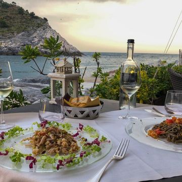 Jantar à luz de velas em um pequeno restaurante em Positano